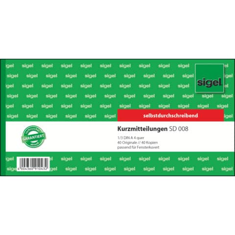 Weiterführende Links zu "Kurzmitteilung 21x10cm 2x40BL SIGEL SD008 SD 1/3 A4q"