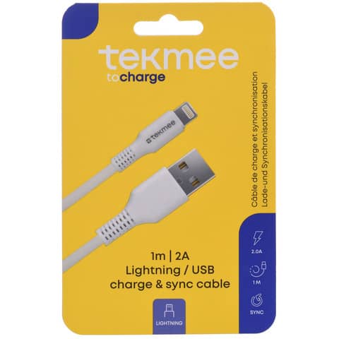 Ladekabel USB-A/Lightning Nylon weiß TEKMEE 40 43 01 69
