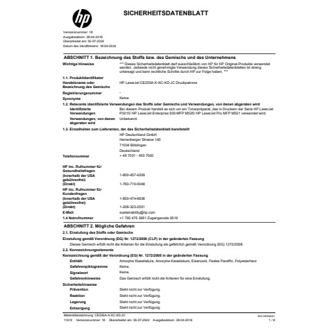 | Hersteller: | HP Deutschland GmbH, Herrenberger Straße 140, 71034 Böblingen, Deutschland, firmen.kunden@hp.com |