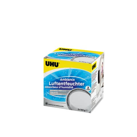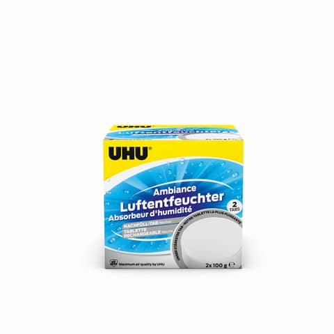 Beugt Feuchtigkeitsschäden in Wohnräumen vor, einzigartiges Luftzirkulations-System einfach nachfüllbar mit leistungsstarkem Tab - geruchsneutral oder mit dezentem Duft, ideal geeignet für den Einsatz in Wohnräumen, Schlaf- und Badezimmern, Toiletten,etc., wirkungsweise ca. 2 bis 3 Monate in Räumen bis 5 UHU Luftentfeuchter Ambiance Tabs. Leistungsstarke Nachfüll-Tabs für ein gesundes Raumklima. Neueste Luftentfeuchter-Technologie. Wirkt sofort. Für alle handelsüblichen Luftentfeuchter geeignet. Ausführung Duft: geruchsneutral. Inhalt: 2 x 100 g.