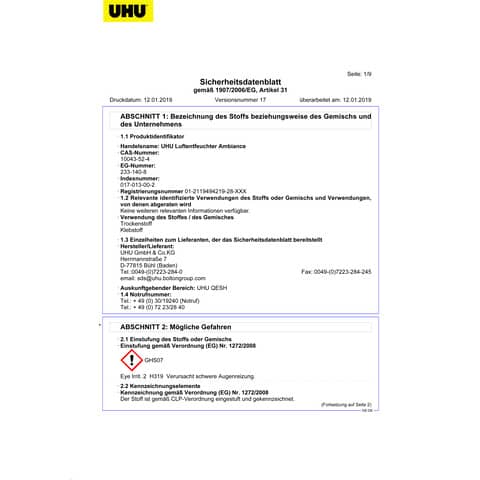 | Hersteller: | UHU GmbH & Co. KG, Herrmannstr. 7 77815 Bühl Deutschland, info@uhu.com |