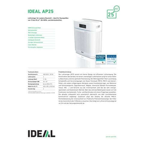 Weiterführende Links zu "Luftreiniger AP25 weiß IDEAL 87340011"