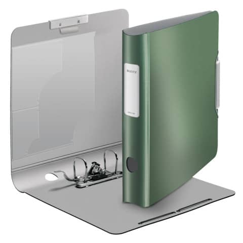 Leitz Qualitäts-Ordner Active Style schmal, mit patentierter 180º-Präzisionsmechanik. 50% weitere Mechaniköffnung für schnelleres und komfortableres Arbeiten. Ablegen auch auf der linken Seite möglich. Am Vorderdeckel mit 3 Innentaschen für lose Papierablage und Utensilien, mit Stiftelasche, eleganter Verschluss mit Edelstahlbeschichtung, mit Gummizug. Ohne Schlitze und Kantenschutz, gewölbter Rücken mit Griffloch, mit beiliegendem, selbstklebendem Rückenschild, außen mit soft gebürsteter Oberfläche, innen Silber als Kontrastfarbe. Material: Polyfoam, 2,8mm. Format: für A4, 318 x 308 mm, Rückenbreite: 60 mm. Farbe: seladon grün.