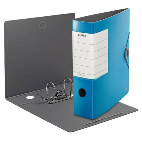 Leitz Qualitäts-Ordner Solid breit, mit patentierter 180º-Präzisionsmechanik. 50% weitere Mechaniköffnung für schnelleres und komfortableres Arbeiten. Ablegen auch auf der linken Seite möglich. Mit Sichttasche am Rücken und auswechselbarem Rückenschild, ohne Schlitze und Kantenschutz, gerader Rücken mit Griffloch, mit Ringverschluss und Gummiband, Oberfläche schmutzabweisend und langlebig. Material: Polyfoam, 2,8 mm. Format: für A4, 318 x 290 mm, Rückenbreite: 82 mm. Farbe: hellblau