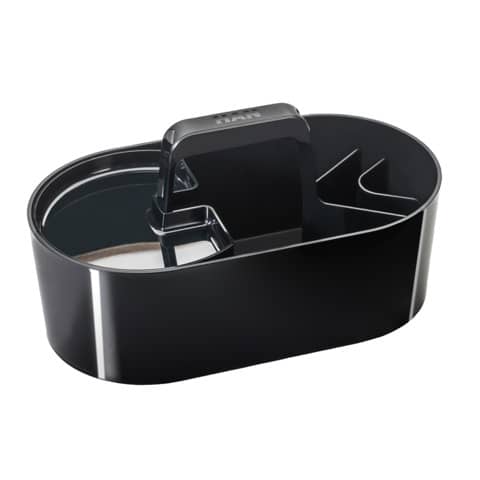 Toolbox LOFT, die perfekte Organisationslösung mit praktischen Unterteilungen und herausnehmbarer Ablageschale. Die tragbare Box ist besonders praktisch für den mobilen Einsatz. Organisation, Ablage und Transport von Arbeitsmaterial, persönlichen Gegenständen und kleinen Utensilien wird mit der Toolbox ganz einfach. Einmal gepackt kann alles zusammen an einem Ort abgestellt werden und ist mit einem Handgriff wieder im Einsatz. Das formschöne Design mit hochglänzender Oberfläche integriert sich harmonisch in jedes Wohn- und Arbeitsumfeld. Damit wird die Toolbox LOFT zu einem wahren Organisationswunder das sich vielfältig einsetzen lässt und zusätzlich beim Style punktet. In den unterschiedlich großen Fächern lassen sich Büromaterialien, Schminkutensilien und Handarbeitszeug ebenso gut organisieren wie Künstlerbedarf, Arzneimittel oder Zubehör für die Küche. Die herausnehmbare Ablageschale dient der Aufbewahrung kleiner Utensilien und macht diese auf dem Schreibtisch schnell zugänglich. Die Box steht auch im gefüllten Zustand sicher und stabil. Der ergonomisch geformte Griff sorgt für ein komfortables Tragen und liegt optimal in der Hand. Made in Germany. Außenmaße (B x T x H) 329,9 x 178,9 x 174,9 mm. Material: hochwertiger Kunststoff, Acrylnitril-Butadien-Styrol (ABS). Farbe der Box: Jet Black, Farbe des Einsatzes und Griffes: Jet Black.