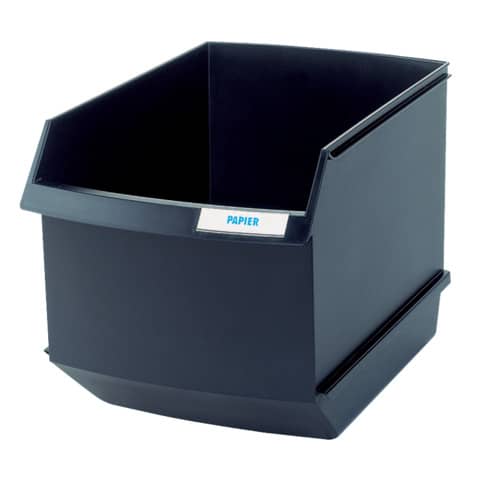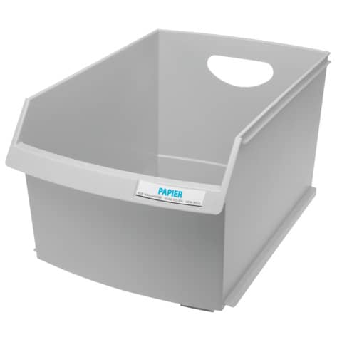 Papierkorb LOGO-DRIVE, 25 Liter. Die formschöne und perfekte Lösung zur optimalen Abfallseparierung verschiedenster Müllarten (z.B. Kunststoff, Metall, Papier, etc.). Im Einsatz mit mehreren Behältern, sind sie individuell beschriftbar je nach Abfallart. Praktische Griffmulden sorgen für ein einfaches Tragen Volumenreduzierung durch liegend gesammeltes Papier. Der stapelbare und großzügig konzipierte LOGO-DRIVE fasst bis zu 2.500 Blatt Papier. Standfest und extra stabil. Inkl. Beschriftungsfeld mit vorgedruckter Beschriftungsetiketten. Zubehör optional: Satz Rollen aus Metall (Art.-Nr.: 1854). Fassungsvermögen: 25 Liter. Made in Germany. Außenmaße (B x T x H): 290 x 446 x 295 mm. Material: 100% Recyclingpolystyrol. Farbe: schwarz.