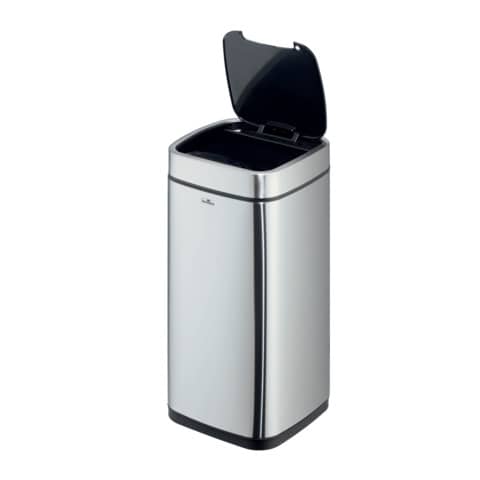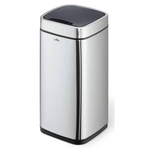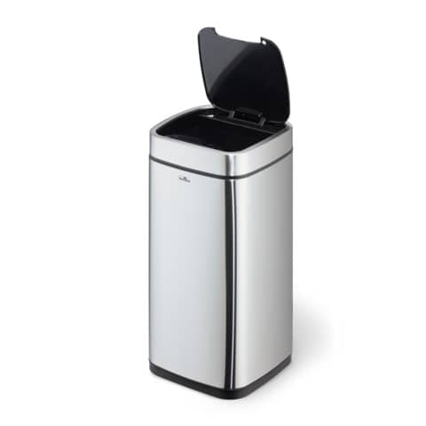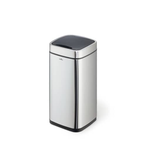 Sensor Abfalleimer NO TOUCH 21 Liter Komfortabel und hygienisch: Mülleimer mit Sensor ermöglichen die kontaktlose Abfallentsorgung in geschlossene Behälter, die besonders unter strengen Hygienerichtlinien erforderlich sind. Abfallbehälter zur berührungslosen Bedienung durch Sensor Technik. Öffnet durch Bewegungssensor und schließt automatisch, alternativ auch manuell über Open/Close Tasten bedienbar. Herausnehmbarer Inneneimer mit Henkel und Beutelfixierung. Abnehmbarer Deckel zum einfachen Entleeren. Soft-Close Funktion des Deckels. Trageöffnung an Rückseite des Abfalleimers. Außenkörper aus Edelstahl mit Fingerprint-Proof Beschichtung. Rutschfester Sockel und viereckige Form zum platzsparenden Platzieren. Benötigt 4 AA oder AAA Batterien (nicht im Lieferumfang enthalten). Fassungsvermögen: 21 Liter. Maße: 270 x 570 x 270 mm (B x H x T).
