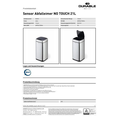 | Hersteller: | DURABLE Hunke & Jochheim GmbH & Co. KG, Westfalenstr. 77 - 79 58636 Iserlohn Deutschland, durable@durable.de |