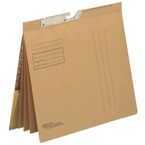 Combi Mehrfach-Pendelhefter, für 4 kaufmännische Heftungen (1 Heftfalz und 3 Trennblätter), mit Dehntasche am Rückdeckel. Für die geheftete Ablage von Einzelakten. Mit Organisationsdruck und Schlitzstanzungen für Signale und Reiter. Material: Natronkarton 250 g/qm (RC). Für A4. Farbe: naturbraun.