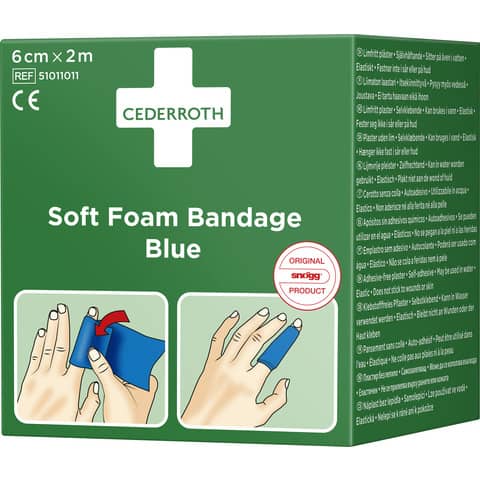 Cederroth Soft Foam Bandage Blue 2 m eignet sich als Pflaster und Verband für kleinere Wunden. Leicht anzuwenden an Fingern, Händen, Armen, Zehen, Füßen, Beinen u. a. Der wasserfeste Schnellverband, der auch bei Kälte, Hitze und Trockenheit sicher sitzt, passt zu allen Arten von kleineren Wunden. Cederroth Soft Foam Bandage ist ein selbsthaftendes, klebstofffreies Pflaster. Auf diese Weise haftet es nicht an Haut oder Haaren. Einfach passgenau abreißen und die verletzte Stelle verbinden. Bei stark blutenden Wunden ein Stück Soft Foam Bandage zu einem Tupfer falten und einen Druckverband anlegen. Cederroth Soft Foam Bandage ist ideal für die schnelle, einfache Wundversorgung. Gute Sichtbarkeit und Eignung für die Lebensmittelverarbeitung dank blauer Farbe. Geeignet für die Cederroth First Aid Station. Latexfrei.