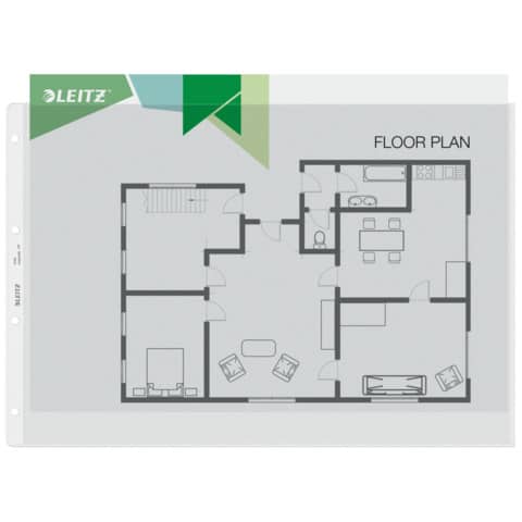 Leitz Prospekthülle für Sonderformate A3 · Hochwertige Prospekthülle für Sonderformate für den täglichen Gebrauch. Zur Ablage von Unterlagen in A3 Querformat. · Genarbt. 0,13 mm PP-Folie. Für Format A3 quer. · Aus genarbter, dokumentenechter und recycelbarer 0,13 mm PP-Folie · Mit Daumenausschnitt zum leichten Öffnen · Mit 4-fach Lochung · Für Format A3 quer ·