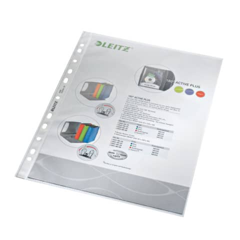 Prospekthülle Standard, oben offen, dokumentenecht, genarbt, mit Multilochung. Material: Polypropylen (PP), 0,09 mm. Format: für A4. Farbe: farblos.