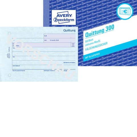 Bestätigen Sie den Verkauf von Waren oder Dienstleistungen mit den Quittungen von Avery Zweckform. Die Quittung, inklusive MwSt., im A6 Querformat ist mit einem feinen, netzartigen Hintergrunddruck ausgestattet. Somit ist die Quittung garantiert fälschungssicher. Profitieren Sie von der langjährigen Erfahrung vom Formularexperten Avery Zweckform.
