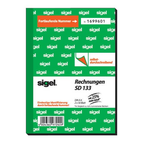 Rechnung A6/2x50BL SD SIGEL SD133 fortlfd. num. mehr