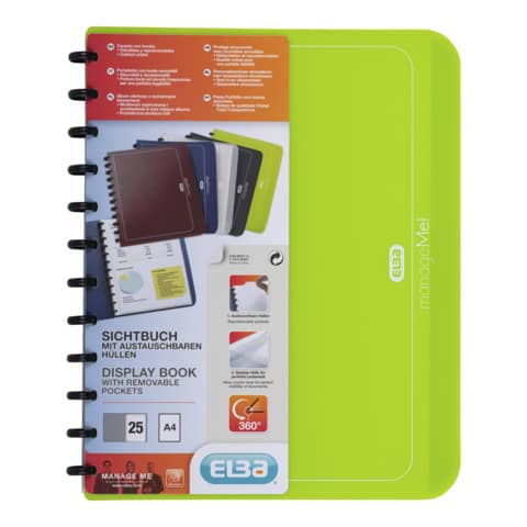 Ringmappe mit 25 Hüllen, zusätzlich erweiterbar um 25 Hüllen, das ideale Präsentationsmittel für den professionellen Anwender. Durch das vario-zipp inside lässt sich die Ringmappe vollständig aufklappen. Gleichzeitig lässt sich die Reihenfolge der Hüllen einfach und flexibel verändern. Mit Hilfe des vielfältigen Zubehörs lässt sich manageMe! Information-Manager zum vollständigen Organiser ausbauen. Ring-Ø: 21 mm, Ringfarbe: grau. Inkl. Einfädelhilfe. Einband aus strapazierfähigem PP, 0,8 mm. Für A4. Größe: 252 x 316 mm (B x H). Farbe: grasgrün.