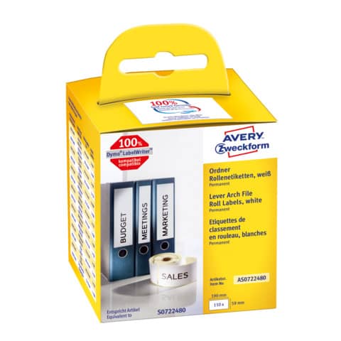 Rollenetiketten 59x190mm weiß AVERY ZWECKFORM AS0722480 permanent