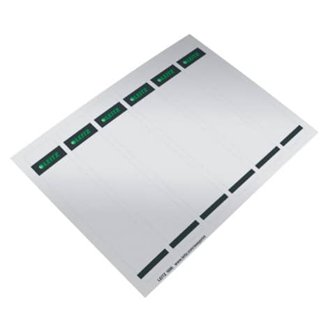Rückenschild, selbstklebend, kurz, schmal, PC-beschriftbar, auf A4-Papier, für Standard- und Hartpappe-Ordner, hohe Deck- und Klebekraft, mit Greifrand, für Laser-, Tintenstrahldrucker und Kopiergeräte, lösungsmittelfrei. Material: Papier. Format: 39 x 191 mm. Inhalt: 600 Stück. Farbe: grau.