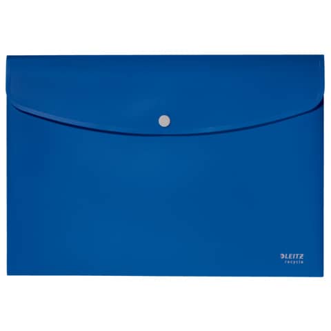 Leitz Sammelmappe Recycle. Hergestellt aus 80% recyceltem Material und zu 100% recycelbar. Klappe mit recycelbarem Druckknopfverschluss. Für die tägliche Aufbewahrung von Unterlagen und losen Blättern. Leicht, langlebig und wiederverwendbar. Blickdicht. Verpackungs-Banderole aus 100% recyceltem Karton. Fassungsvermögen: bis 150 Blatt DIN A4 (80 g/qm). Material: 80% recyceltes Polypropylen (PP) 0,5 mm. Format: für DIN A4, 235 x 320 mm. Farbe: blau.
