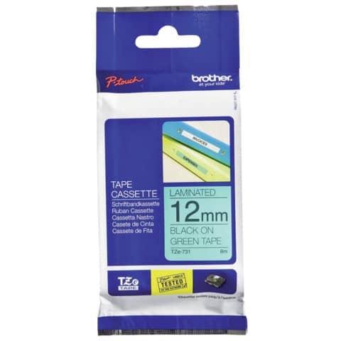 Produktinformationen "Schriftband 12mmx8m grün/sw BROTHER TZE731 laminiert"