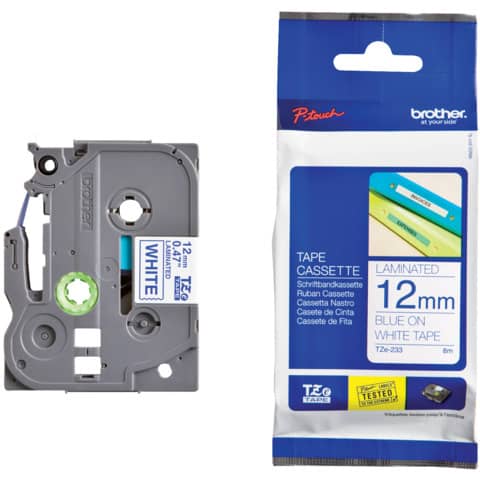 Produktinformationen "Schriftband 12mmx8m ws/blau BROTHER TZE233 laminiert"