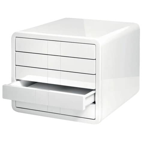 Schreibtischserie i-Line: Schubladenbox i-Box mit 5 geschlossenen Schubladen für Papierformate DIN A4/C4 in Premium-Qualität. Einzigartiges, zeitloses, elegantes und innovatives Design in hochglänzender Ausführung für den gehobenen Anspruch in einem repräsentativen Umfeld. Besonders leichtlaufende Schubladen mit Auszugssperre und Griffloch für ein bequemes Entnehmen. Neues patentiertes Beschriftungskonzept mit einer innovativen Clip-Mechanik. Inkl. Beschriftungsschilder. Made in Germany. Außenmaße (B x T x H): 295 x 355 x 247 mm. Innenmaße der Schubladen (B x T x H): 244 x 325 x 33 mm. Material: hochwertiger Kunststoff (ABS). Farbe des Gehäuses: weiß. Farbe der Schubladen: weiß.
