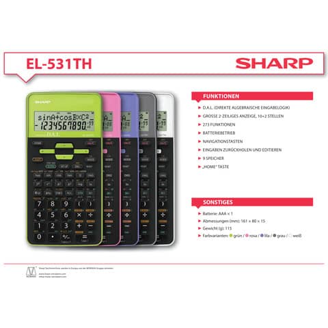 Schulrechner 12-stellig schwarz/weiß SHARP SH-EL531THWH Solar