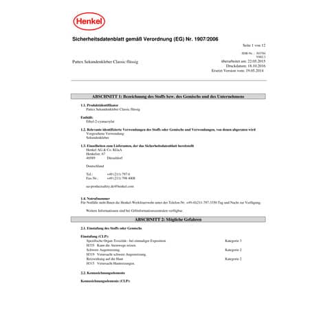 Weiterführende Links zu "Sekundenkleber Pattex Classic HENKEL 9H PSK1C WA97 3g"