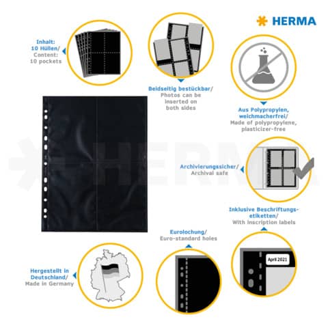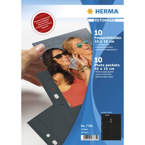 Sichthülle Fotophan 10x15 cm hoch sw HERMA 7785 10 Stück