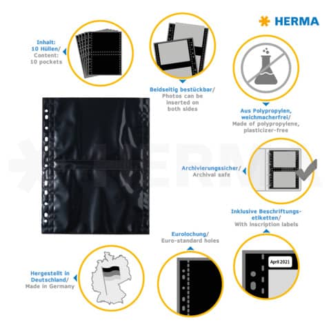 Sichthülle Fotophan 13x18 cm quer sw HERMA 7787 10 Stück