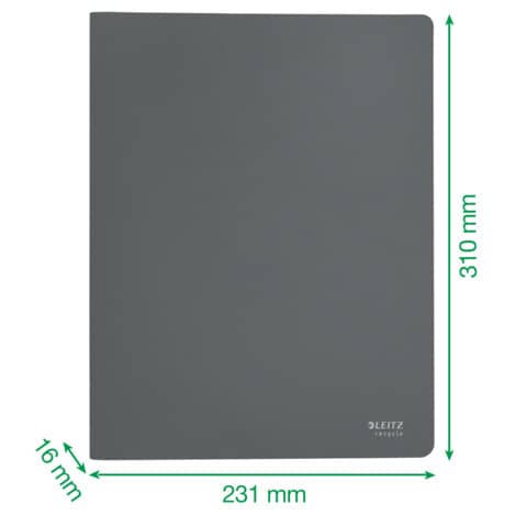 Leitz Sichtbuch Recycle. Mit 40 Hüllen, fest eingebunden. Hergestellt aus 90% recyceltem Kunststoff, 100% recycelbar. Leicht, langlebig und wiederverwendbar. Dokumentenecht. Mit Rückenschild. Kein Verpackungsabfall, Kennzeichnung nur mittels Etikett. Material: 90% recyceltes Polypropylen (PP), Einband: 0,5 mm, Hüllen: 0,04 mm. Format: für DIN A4, 231 x 310 mm. Farbe: grün.