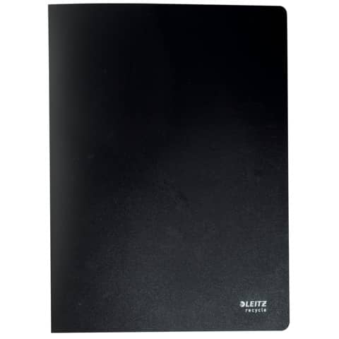 Leitz Sichtbuch Recycle. Mit 20 Hüllen, fest eingebunden. Hergestellt aus 90% recyceltem Kunststoff, 100% recycelbar. Leicht, langlebig und wiederverwendbar. Dokumentenecht. Mit Rückenschild. Kein Verpackungsabfall, Kennzeichnung nur mittels Etikett. Material: 90% recyceltes Polypropylen (PP), Einband: 0,5 mm, Hüllen: 0,04 mm. Format: für DIN A4, 231 x 310 mm. Farbe: schwarz.