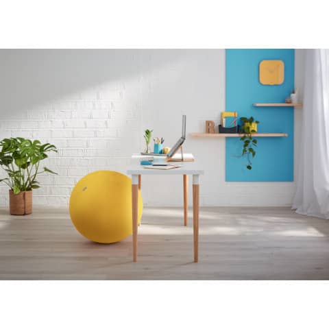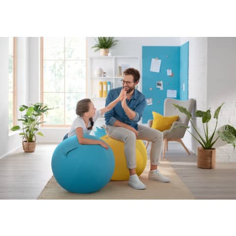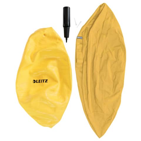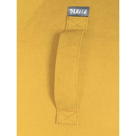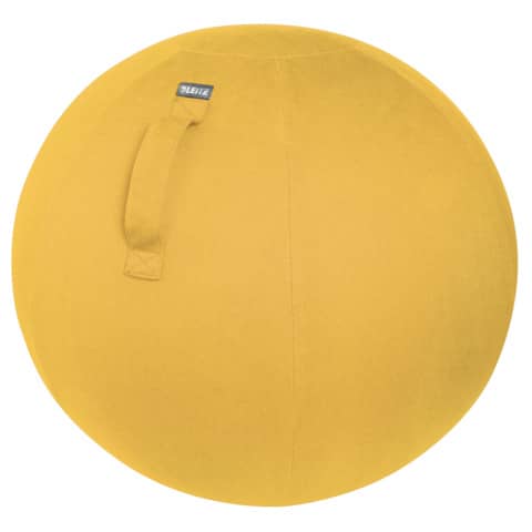 Leitz Sitzball Ergo Cosy. Moderner, ergonomischer Sitzball für aktives Sitzen. Fördert die Bewegung der Rücken- und Rumpfmuskulatur um die Körperhaltung und Beweglichkeit zu verbessern und hilft Rückenschmerzen zu lindern. Ideal als Schreibtischstuhl um in Bewegung zu bleiben. Geeignet auch für Übungen wie Yoga, Gleichgewichtstraining, Rückenstretching, Physiotherapie und Bauchübungen oder als Gymnastikball. Schnelle und einfache Inbetriebnahme durch Aufpumpen des Innenballs mit der mitgelieferten Handpumpe und Einstecken des Stopfens. Der mitgelieferte Stoffüberzug aus Baumwolle ist abnehmbar und von Hand waschbar. Mit stabilem und robustem Tragegriff. Lieferung inklusive Innenball, Stoffüberzug, Handluftpumpe und 2 Verschlussstopfen. Plastikfreie Verpackung. Material: PVC, phtalatfrei. Format: Ø 65 cm. Gewicht: 1,6 kg. Farbe: gelb.
