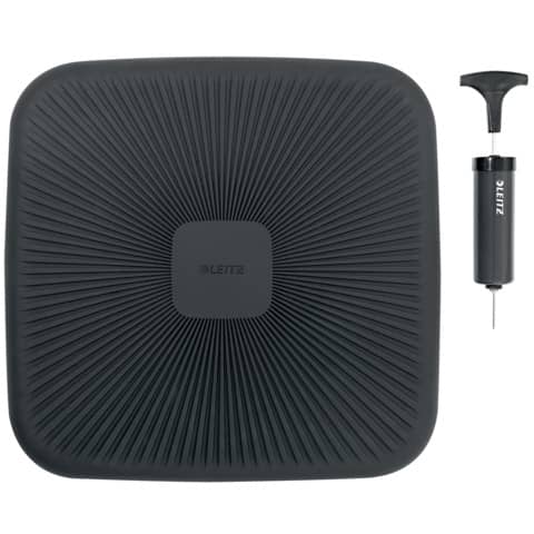 Leitz Sitzkissen Active Balance. Aufblasbar, Die quadratische Form für bessere Ergonomie im Vergleich zu runden Standard-Balancekissen dank vergrößerter Sitzfläche und intuitiv richtiger Positionierung auf dem Stuhl. Rechteckiges Design für eine korrekte Positionierung auf dem Stuhl und eine perfekte Ausrichtung des Rückens. Kompatibel mit jedem Stuhl, um den Komfort am Arbeitsplatz zu maximieren. Kann dabei helfen, Beschwerden, Müdigkeit und Steifheit zu verringern, die durch langes Sitzen und gesundheitliche Probleme wie Ischias entstehen können. Verbessert die Durchblutung und kann den Druck auf die Wirbelsäule verringern, indem es Mikrobewegungen erzeugt, um das Gleichgewicht zu halten und den Kontakt zwischen Ihrem Steißbein und dem Stuhl minimiert. Kann bis zu 150 kg tragen, wenn es auf einen Stuhl positioniert wird. Getestet und empfohlen vom deutschen IGR, dem Institut für Gesundheit und Ergonomie, nach DIN 26800 EN ISO 15537. Ideal für den Einsatz zu Hause oder im Büro als vollständig mobile Lösung. Wird mit einer Luftpumpe geliefert. Plastikfreie Verpackung. Format: 360 x 55 x 360. Gewicht: 1,24 kg. Farbe: samtgrau.
