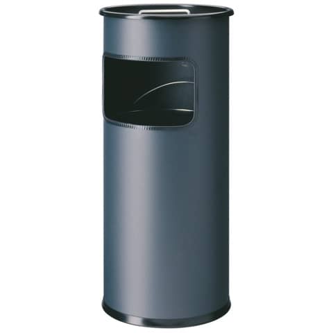 Papierkorb mit Ascher METALL rund. Ausstattung: mit Ascher und Griffrand. Geeignet für den Innen- oder geschützten Außenbereich. Inklusive Sandfüllung für den Ascher. Ascher aus Aluminium mit Drahteinsatz. Ideal für gekennzeichnete Raucherzonen und Eingangsbereiche. Papierkorb mit herausnehmbarem Einsatz für leichte Leerung und Reinigung. Größe (Ø x H): 260 x 620 mm. Volumen Papierkorb: 17 l. Volumen Ascher: 2 Liter. Farbe: anthrazit.