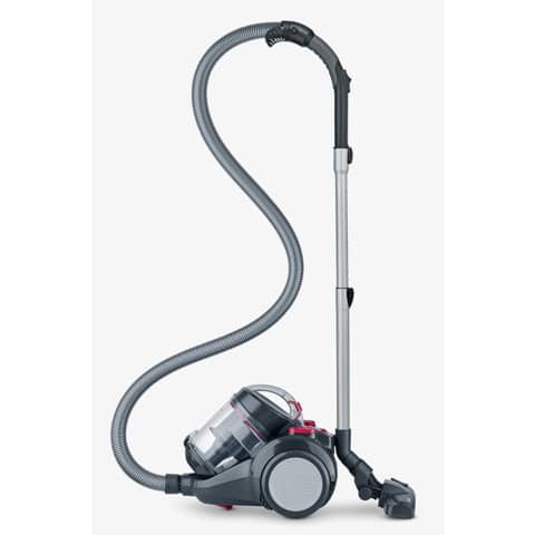 Bodenstaubsauger ohne Beutel mit Multi-Cyclone-Technologie für Hartböden und Teppiche. Multi-Zyklonen-Technologie - kein zusätzlichen Kosten für Beutel oder Filter. Einstellbare Saugleistungsregulierung durch umschaltbare Premium Eco-Bodendüse für verschiedenste Bodenbeläge und perfekte Reinigungsergebnisse und automatische Abschaltung. 2,1-Liter Staubbehälter und 5-fach-Filterung inklusive HEPA 13- - besonders für Allergiker geeignet. Einfache Reinigung durch Behälterentleerung auf Knopfdruck. Staubbehälter und Filter sind ausspülbar. Horizontale und vertikale Parkfunktion und Tragegriff. 6 Meter Kabel mit automatischer Kabelaufwicklung für einen großen Aktionsradius von 9 m. Ergonomischer Handgriff mit Teleskop-Saugrohr und Zusätzlich mit Parkettdüse für die Schonung von Parkett- und Hartböden. 2-teiliges Zubehör-Set: Polster- und Fugendüse. Besonders wendig durch 3-Punkt-Lenkung mit gummierten Rädern. Lautstärke 79 dB. 800Watt. Größe (BxHxT): 27x32x40 cm. Gewicht: 6,25 kg. Farbe: schwarz/rot.