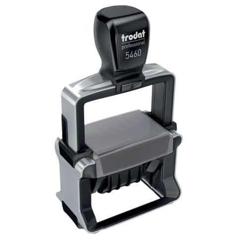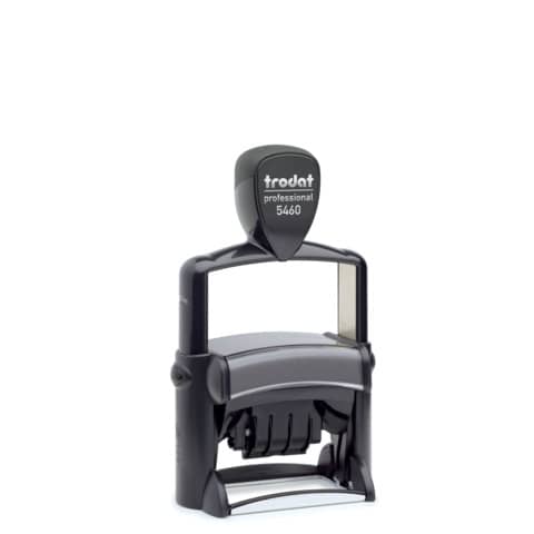 Trodat Professional 5460 Datumstempel mit Gutschein für individuelle Textplatte. Anwenderkomfort und Sauberkeit garantiert. Robuster Textstempel mit Stahlkern für den täglichen Einsatz im Büro, integriertes Stempelkissen, Schrifthöhe Datum 4mm. Die Bandabdeckung garantiert saubere Finger bei der Datumseinstellung. Ergonomischer Griff, einfaches Platzieren des Abdrucks. Der Stempel wird mit einem Gutschein für Ihre individuelle Gestaltung des Abdruckes geliefert. Ökologisch nachhaltig produziert. Serienmäßig.