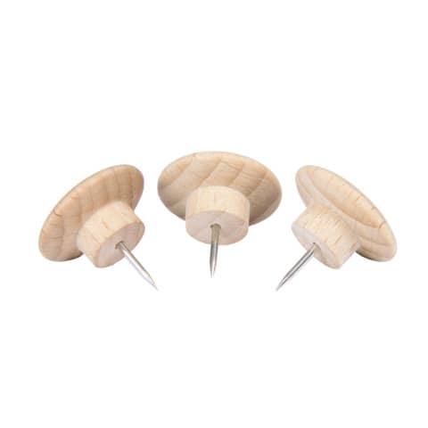 Pinnnadeln aus Holz (25 Stück). Hergestellt aus Buchenholz (Fagus sylvatica). Runde Form, Durchmesser 20 mm. Für alle Legamaster-Pinboards geeignet. Holz ist ein Naturprodukt. Jedes Teil ist einzigartig in Farbe und Aussehen.