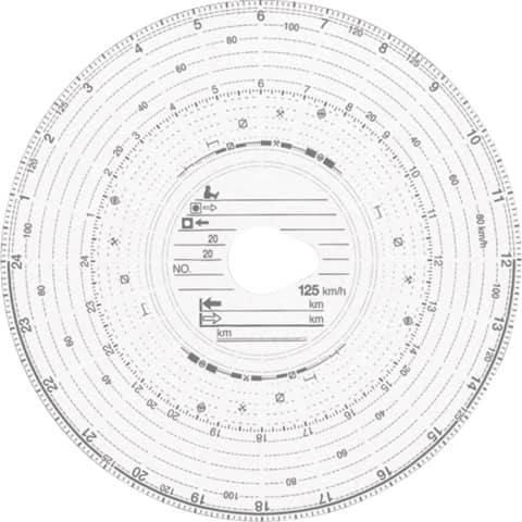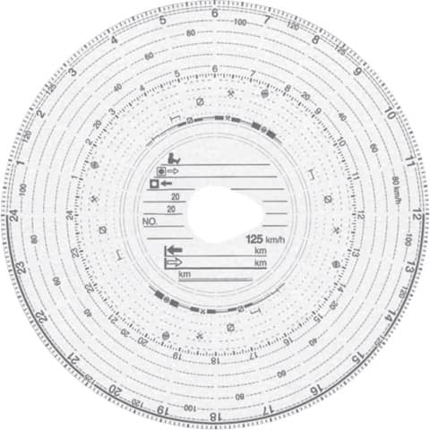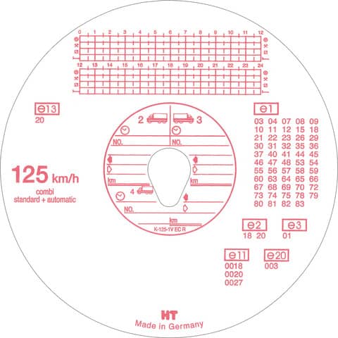 Automatisch und manuell auswertbare Diagrammscheibe für Tachographen mit Zulassungsnummern: - e1 -03 -04 -07 -08 -09 -10 -11 -12 -15 -18 -21 -22 -23 -26 -29 -30 -31 -32 -35 -36 -37 -40 -41 -44 -45 -46 -47 -48 -53 -54 -55 -56 -57 -58 -59 -60 -63 -64 -65 -66 -67 -68 -69 -70 -72 -73 -74 -75 -78 -79 -80 -81 -82 -83 - e2 -18 -20 - e3 -01 - e11 -18 -20 -27 - e20 -003