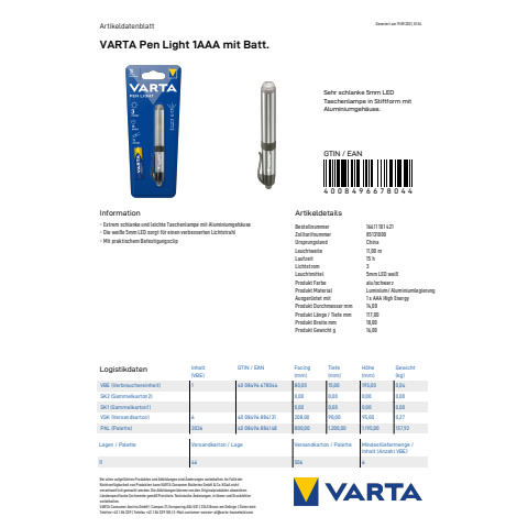 Weiterführende Links zu "Taschenlampe LED PenLight VARTA 16611101421"
