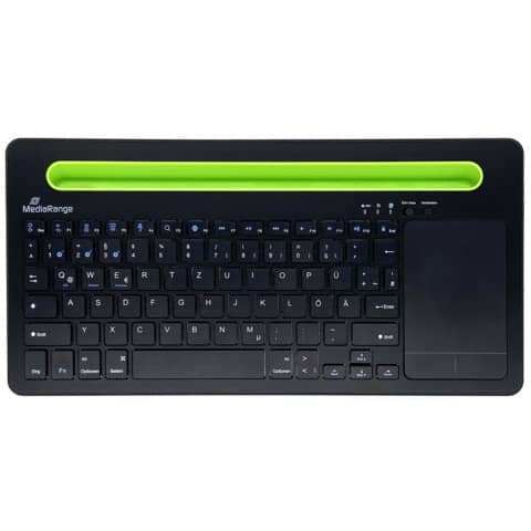 MediaRange Eingabegeräte eignen sich ideal für sämtliche Anwendungen im Büro oder Zuhause. Unsere wiederaufladbaren Funk-Tastaturen mit integriertem Touchpad lassen sich schnell und einfach via Bluetooth mit Ihrem Endgerät verbinden und sind mit sämtlichen gängigen Betriebssystemen kompatibel*. Nutzen Sie unsere Tastaturen zur komfortablen Bedienung Ihres Smart-TVs, Smartphones oder Tablets und erledigen Sie Ihre E-Mails schnell und einfach von unterwegs. Mit über 8 Millionen Tastenanschlägen und Spritzwasserschutz sind unsere Tastaturen ideal vor den Einwirkungen des Alltags geschützt. Ob mit integrierter Halterung für mobile Endgeräte, als klassische Kompakt-Tastatur oder als faltbare Variante für die Hosentasche: MediaRange bietet die passende Tastatur für jeden Bereich. *Eingeschränkter Nutzungsumfang bei iOS Geräten: Touchpad/Mausfunktion.