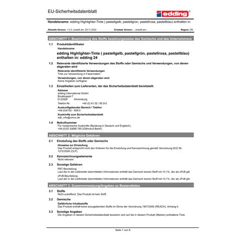 | Hersteller: | edding International GmbH, Bookkoppel 7 22926 Ahrensburg Deutschland, www.edding.com |