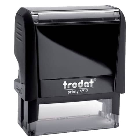 Trodat Printy 4912 mit Gutschein für individuelle Textplatte. Kompaktes, zeitgemäßes Design und zahlreiche technische Verbesserungen setzen einen völlig neuen Standard. Weiche Kunststoffe im Griffbereich lassen das Produkt angenehm in der Hand liegen. Der patentierte Click-Out-Button sorgt für einen mühelosen und sauberen Kissenwechsel auf Knopfdruck. Der Stempel wird mit einem Gutschein für Ihre individuelle Gestaltung des Abdruckes geliefert.