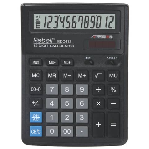 Tischrechner schwarz REBELL RE-BDC412BX Solar/Batterie