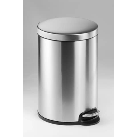 Treteimer. Material und Form: Edelstahl, rund. Anzahl der Sortierfächer: 1. Ausstattung: Deckel vorhanden. Mit Fingerprint-Proof Beschichtung, herausnehmbarer Innen-Eimer mit Henkel, geräuschloses Schließen des Deckels, sicherer Stand und Korrosionsschutz durch umlaufenden Kunststoffsockel, integrierter Tragegriff am Deckelscharnier. Durchmesser: 292 mm. Höhe: 455 mm. Tiefe: 360 mm. Volumen: 20 l. Farbe: metallic silber.