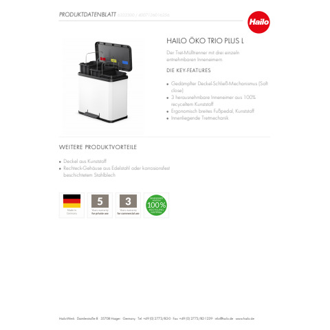 Weiterführende Links zu "Tret-Abfalleimer Öko trio plus weiß HAILO 6332300"