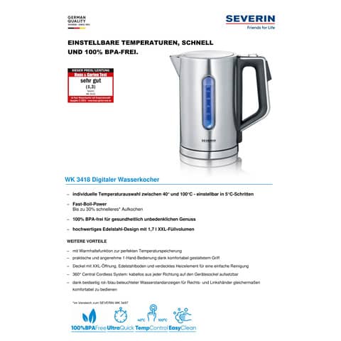 Wasserkocher 1,7 Digit ed./sw. SEVERIN WK 3418 Digital
