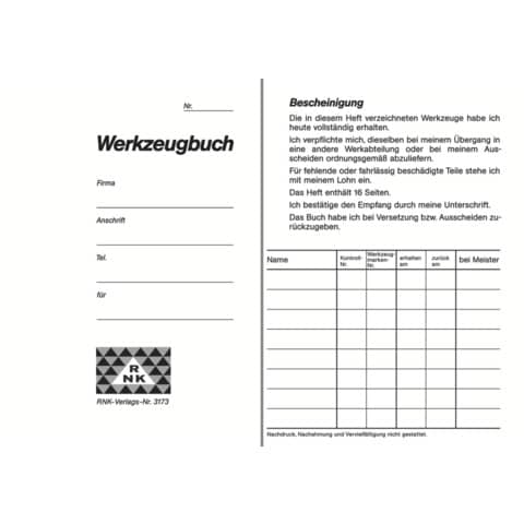 Werkzeugbuch A6 neutral 8Bl RNK 3173