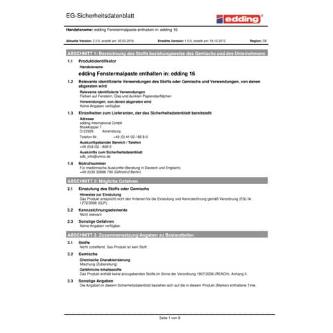 Hersteller: edding International GmbH, Bookkoppel 7, 22926 Ahrensburg, Deutschland, www.edding.com