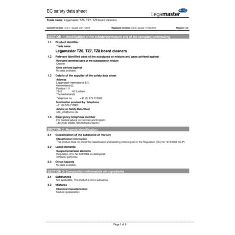| Hersteller: | Legamaster International B.V., Kwinkweerd 62, 7241 CW Lochem, Niederlande, info@legamaster.com |