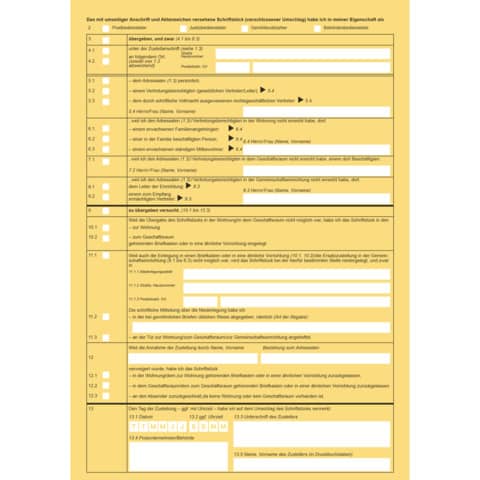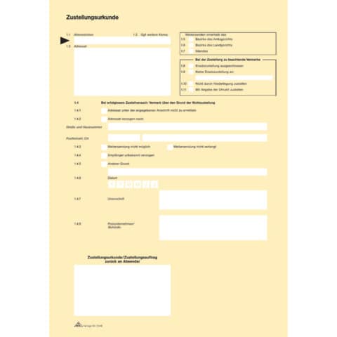 Dieser amtliche Vordruck dient der Erstellung eines Zustellnachweises bei der Zustellung nach § 166 ZPO. Auch für Tintenstrahl-und Laserdrucker geeignet.